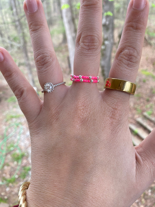 Hot Pink Beaded Stacker Ring set – Gold Filled or Sterling Silver Accents – Dainty Handmade Jewelry