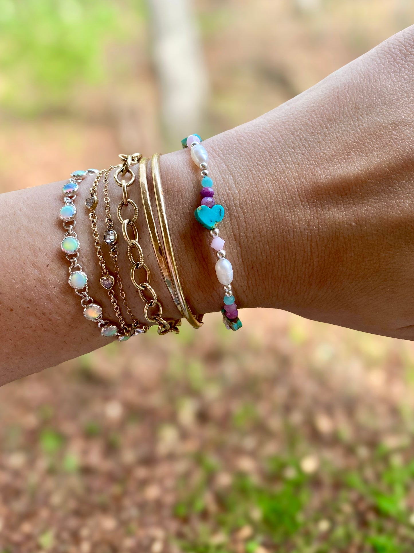 Care Tip: To ensure the longevity of the stretch cord, always roll the bracelet on and off your wrist—avoid pulling or stretching it wide. This helps maintain the elastic’s strength and keeps your bracelet looking beautiful for years to come. Keep away from chemicals.