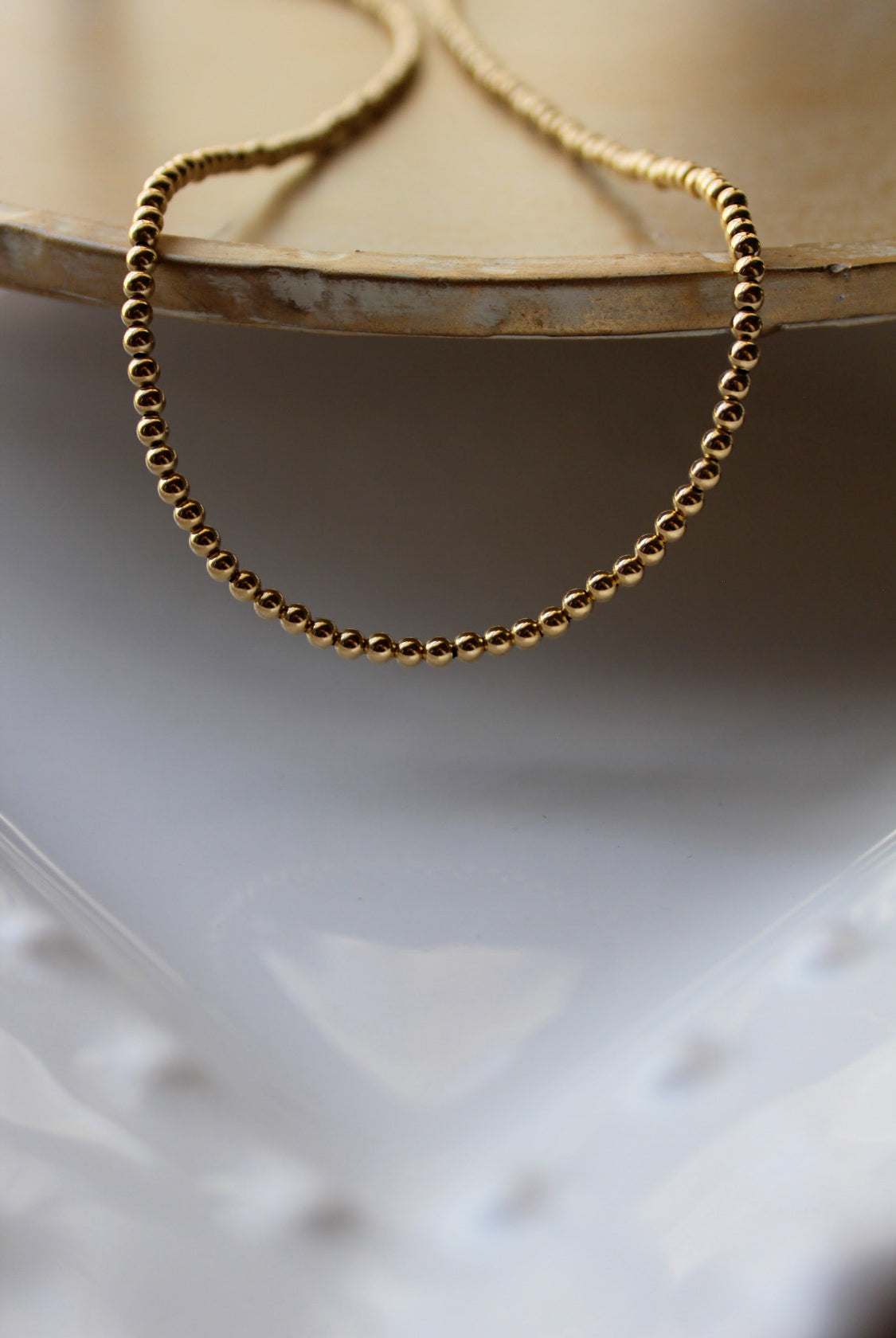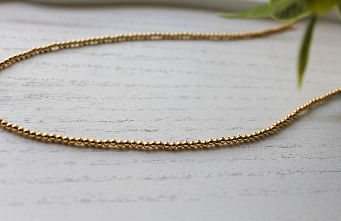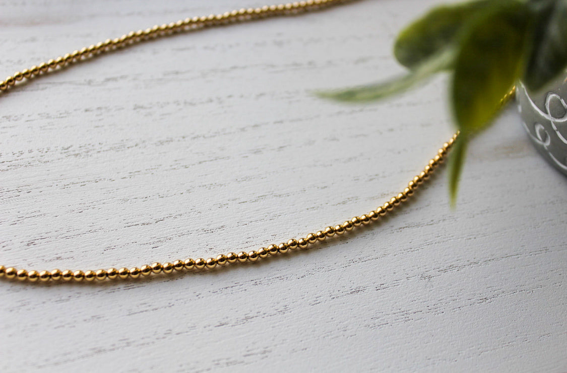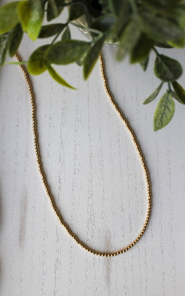 Golden Glow’ – a classic 14kt gold-filled necklace with 3mm beads.