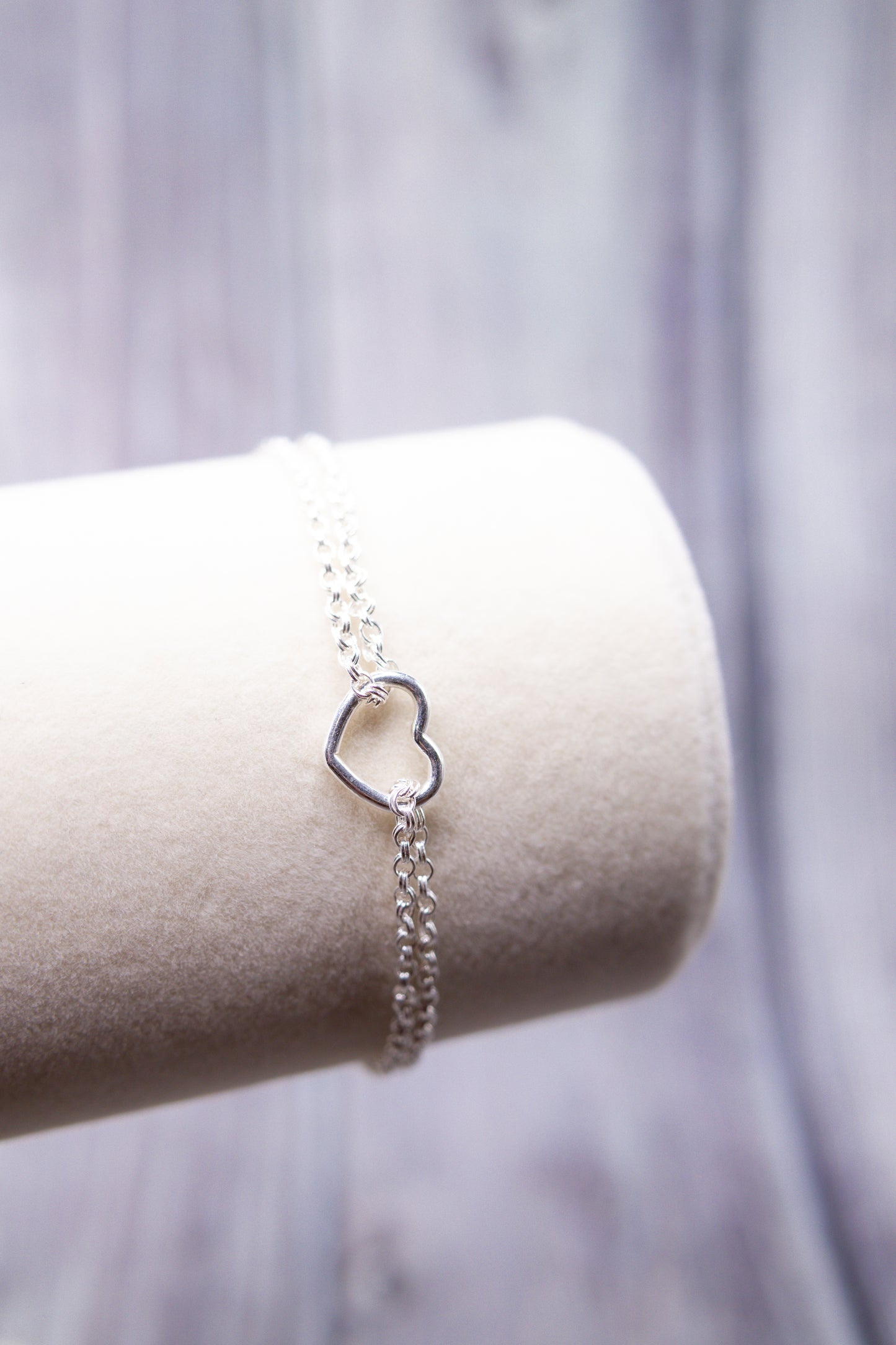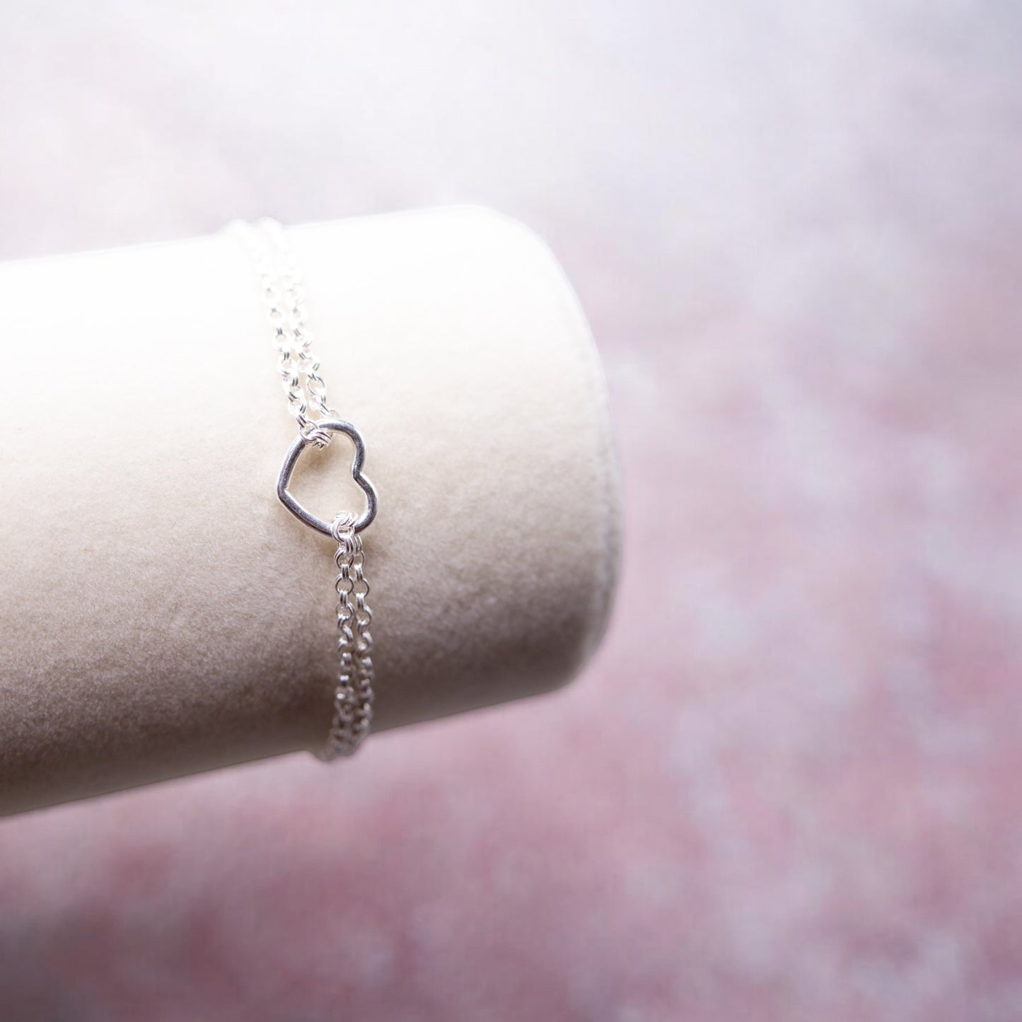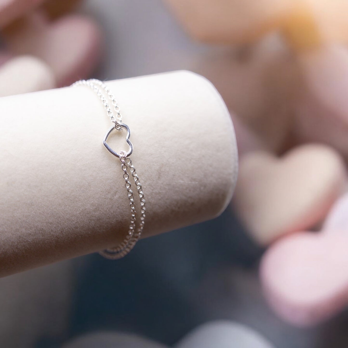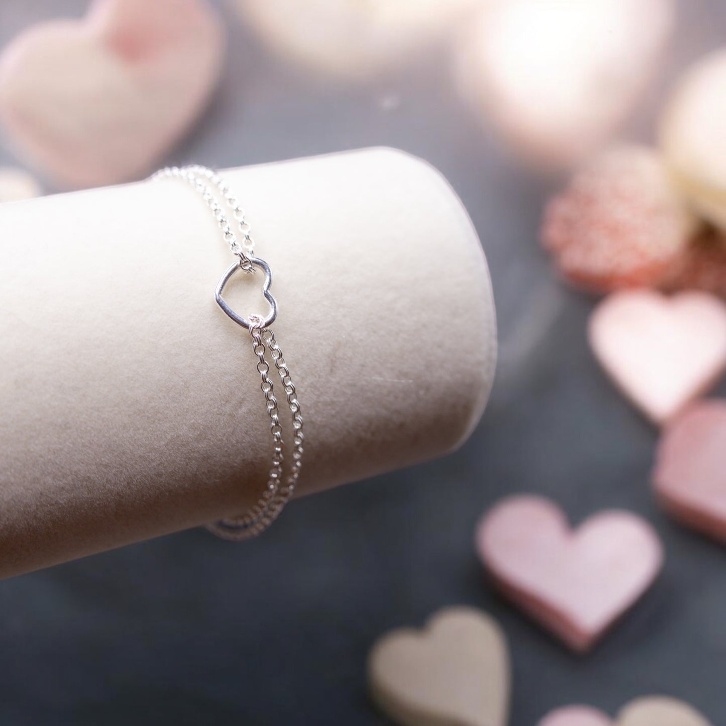A 1.8mm sterling silver cable chain, double-stranded for added beauty, featuring a heart-shaped connector for an elegant touch. Timeless and perfect for everyday wear.